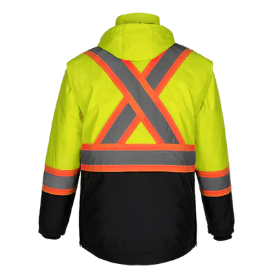 The Kenworth 5-in-1 Hi-Vis Parka is the ultimate in versatility, protection, and safety. CSA-compliant and engineered for all-weather performance, this jacket transforms into five different configurations, making it perfect for year-round work in demanding environments.